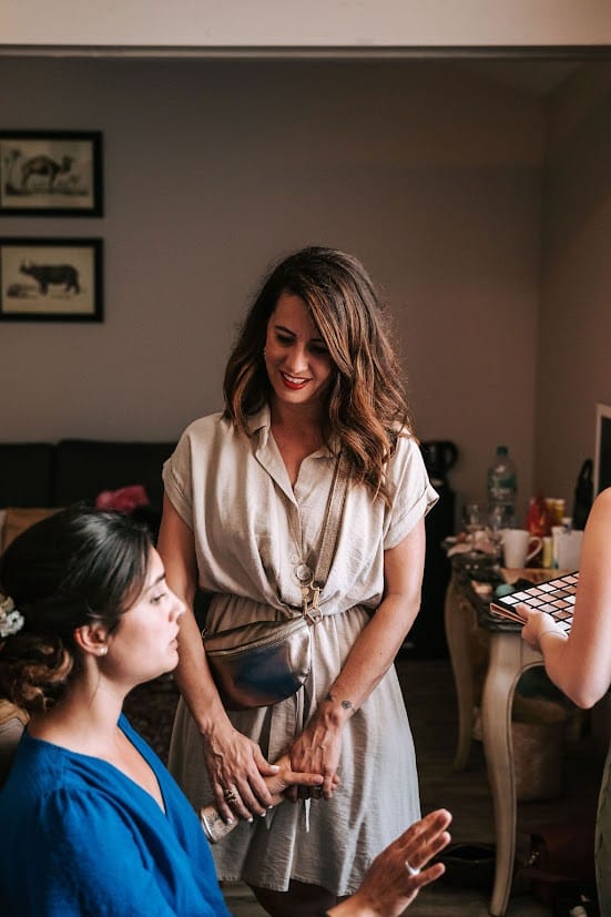 Les mouchoirs parfumés ou un mini-kit de maquillage sont parfaits pour gérer les larmes d’émotion et les petites retouches. Entre les câlins, la chaleur et les moments forts, il est fréquent que le maquillage bouge légèrement. Ces petits accessoires permettent de rester fraîche et impeccable sur les photos, sans avoir besoin de tout refaire.
