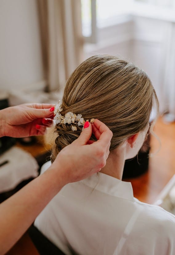 Enfin, les élastiques et pinces à cheveux sont toujours utiles pour des ajustements express. Ils peuvent servir à refaire une queue de cheval en urgence, maintenir un chignon qui se relâche, ou même attacher temporairement un élément de décoration ou un ruban. Ce sont de petits accessoires simples, mais qui dépannent très souvent pendant un mariage.