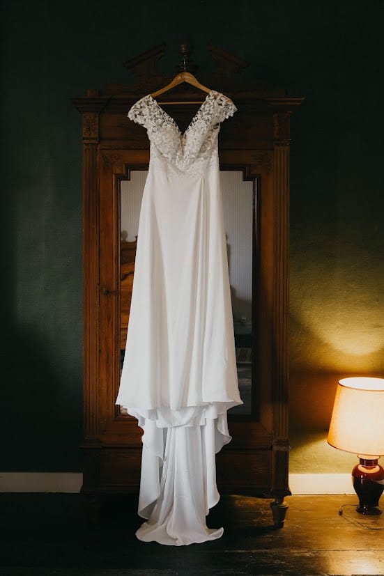 Les tenues jouent un rôle central dans l’esthétique d’un timeless wedding, car elles incarnent à la fois l’élégance, la sobriété et la durabilité. La mariée privilégie une silhouette intemporelle, aux lignes épurées et aux coupes impeccables, loin des détails trop marqués par les tendances. Les matières nobles comme la soie, le crêpe, l’organza ou la dentelle délicate apportent une sophistication naturelle, tandis que les accessoires restent discrets et soigneusement choisis. Du côté du marié, le costume se veut classique et parfaitement ajusté, dans des tons sobres tels que le noir, le bleu profond ou le gris, complété par des détails raffinés. L’objectif n’est pas d’en faire trop, mais de créer une allure juste, élégante et harmonieuse, qui traversera le temps avec grâce et sublimera les souvenirs du jour J.